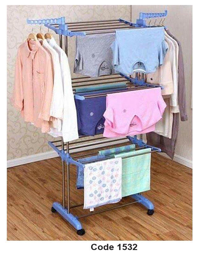 مجفف الملابس مصنوع من الستان ستيل. يتحمل 68 كجم عرض 151 سم ارتفاع 147 سم